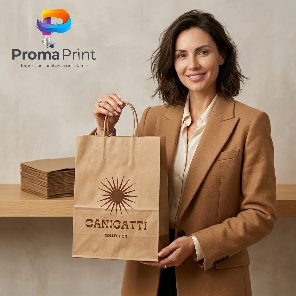 Sac cartonné Luxe blanc plastifié avec LOGO